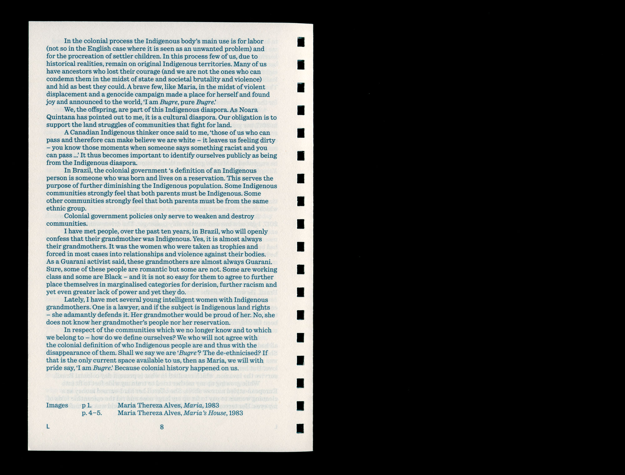 In respect of the communities which we no longer know and to which we belong to – how do we define ourselves? We who will not agree with the colonial definition of who Indigenous people are and thus with the disappearance of them. Shall we say we are ‘Bugre’? The de-ethnicised? If that is the only current space available to us, then as Maria, we will with pride say, ‘I am Bugre.’ Because colonial history happened on us.