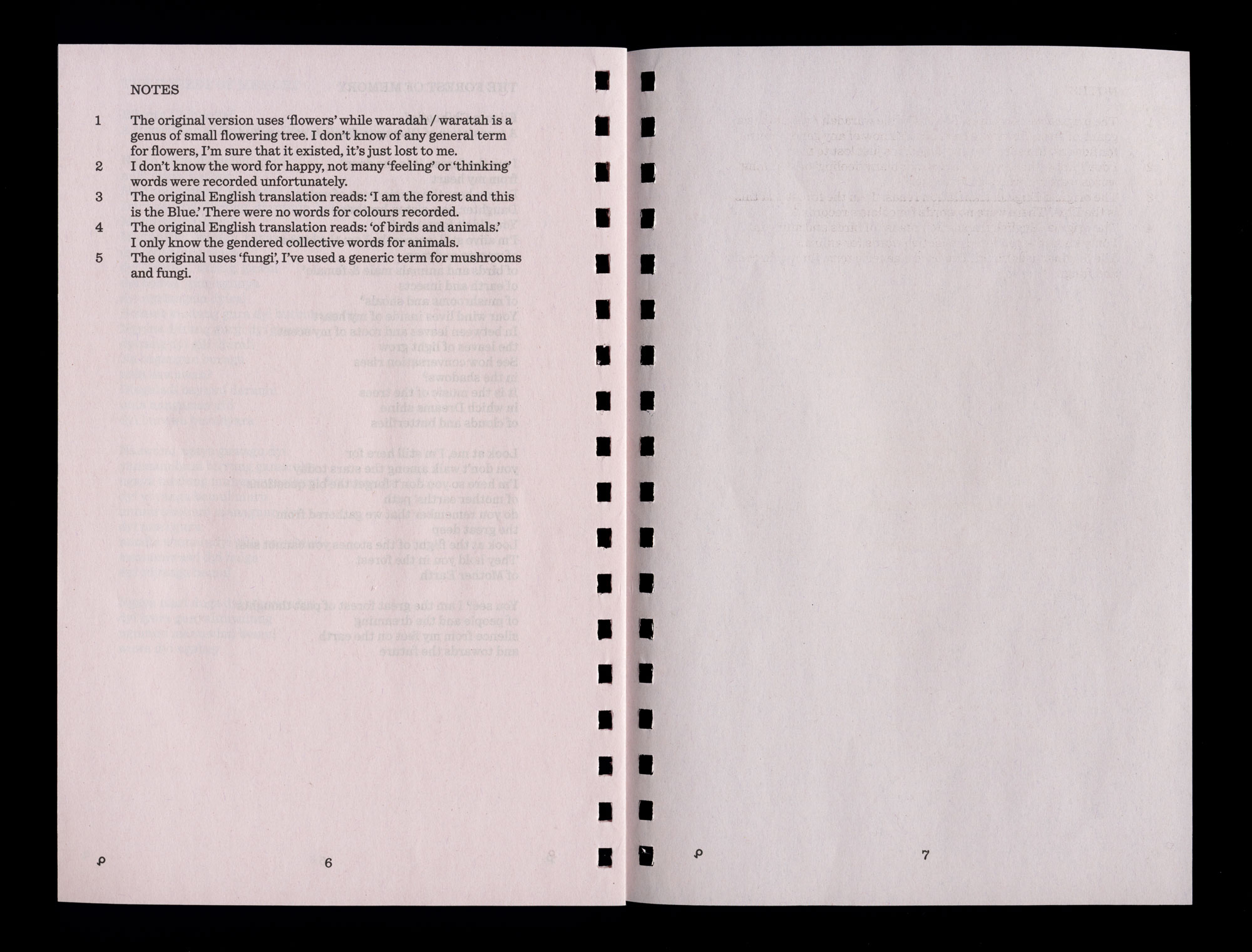 The original English translation reads: ‘I am the forest and this is the Blue.’ There were no words for colours recorded. ↩